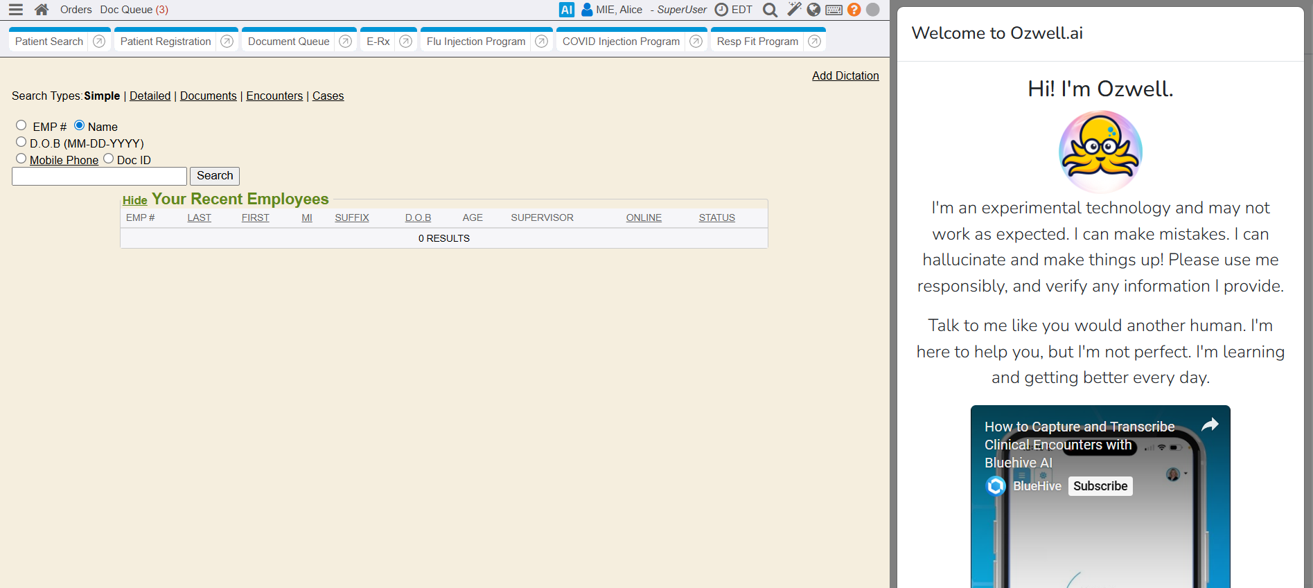 - If AI has been enabled/licensed for the database, the AI icon will display. Clicking this icon will open/close Ozwell, the AI Assistant.