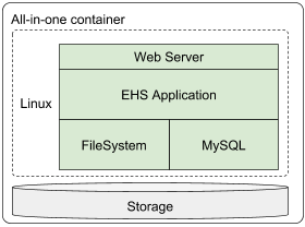 All the required services run within a single server. This approach is best utilized in small (~50 concurrent users) deployments or for sandbox development use-cases. The “all-in-one” strategy for production is best when a virtualized environment is available for scaling and redundancy underneath the Enterprise Health System. A VM image that contains all necessary services for the Enterprise Health System to operate can be provided. This approach can also be used for Development and QA lifecycles. The All-in-one footprint enables quick and easy deployment and can serve as a stepping stone to larger deployments with dedicated services.